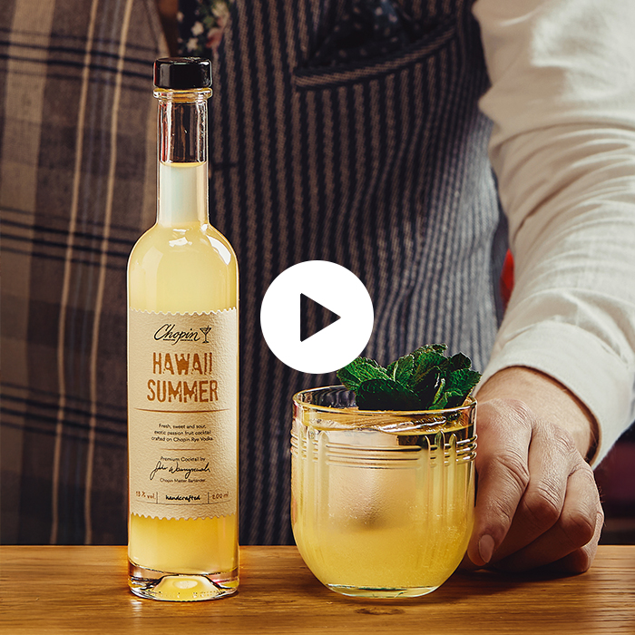 Schłodź kieliszek typu cocktail glass. Wlej pół butelki mocno schłodzonego koktajlu. Udekoruj zieloną oliwką.