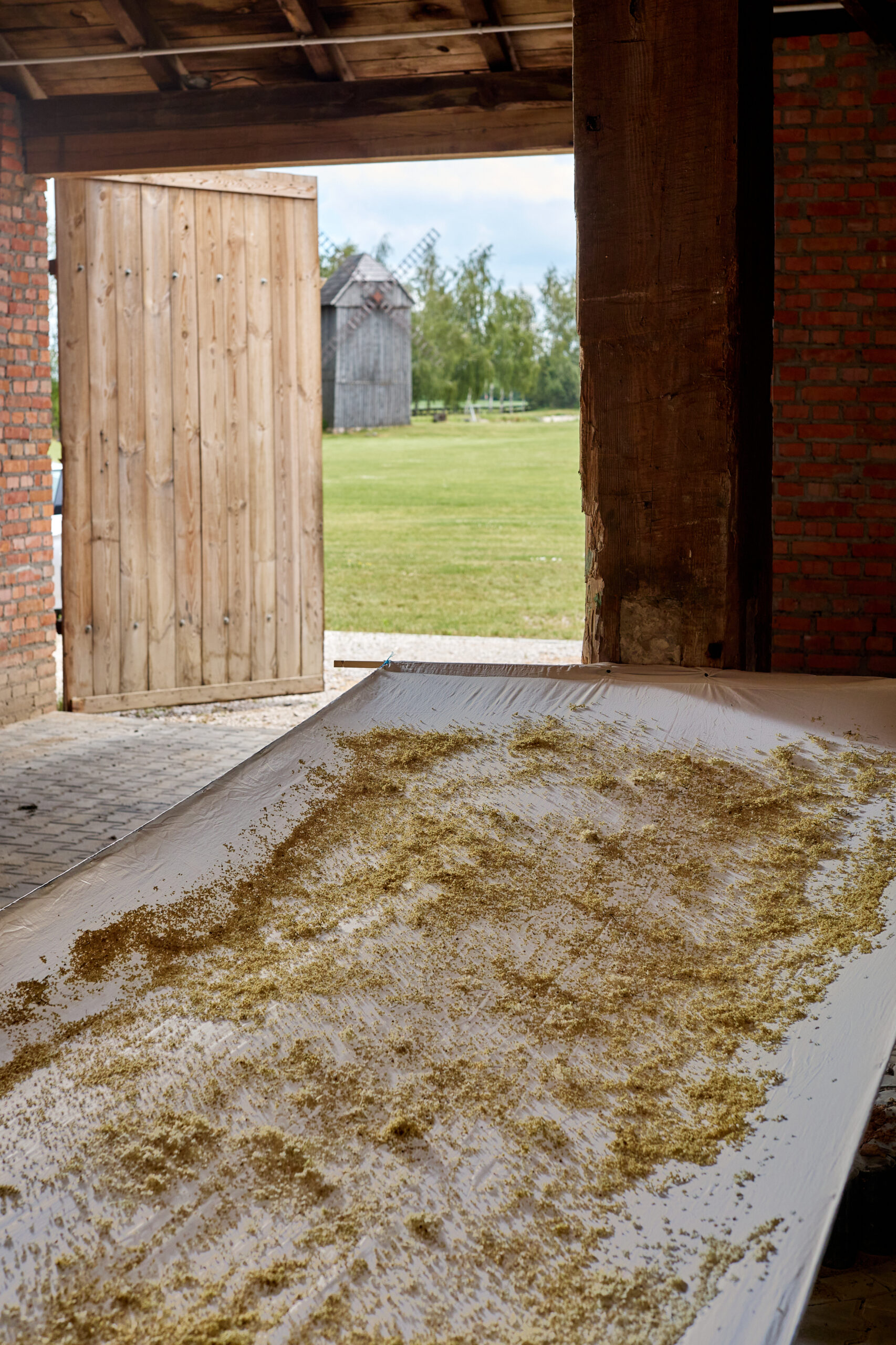 a następnie są starannie mieszane i pozostawione do odpoczynku w 50-letnich polskich kadziach dębowych.